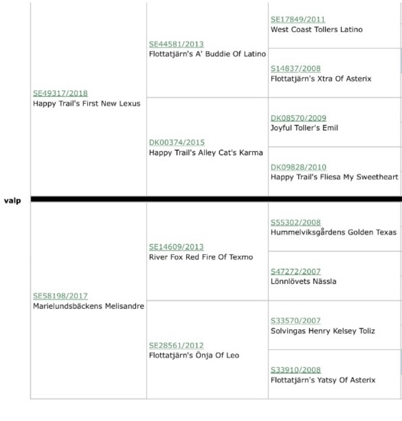 Happy Trail’s First New Lexus (SE49317/2018), bor til dagligt i Vaggeryd i Sverige sammen med sin familie og hans far Buddie (Flottajärn’s A’ Buddie of Latino SE44581/2013). Buddie er svensk vildtspor champion samt udstillingschampion, dyrker schweiss spor sammen med sin ejer Thomas. Buddie er far til 6 kuld, i alt 36 hvalpe.