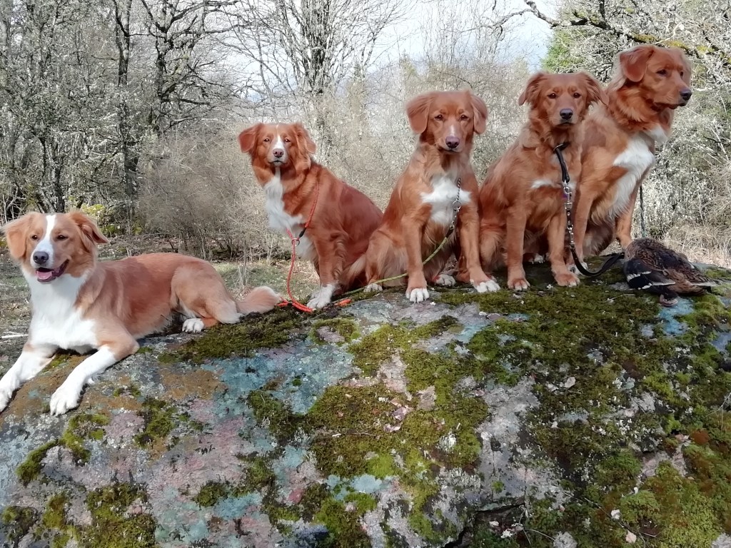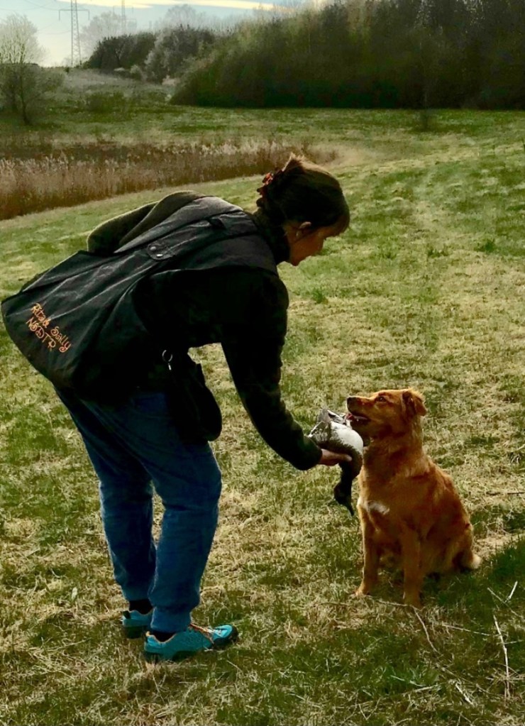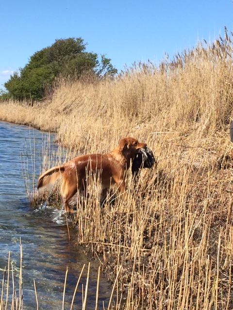 I perioder har Rita og jeg gået hos jagtinstruktør Pil fra Midtsjællands Hundetræning. Det er altid sjovt at deltage på et lille hold, hvor man er eneste toller blandt labradorer og en jagt-golden. Her har vi arbejdet med alle elementer indenfor jagttræning for retriever; apportering til vand/land, søg, dirigering, men også elementer fra lydighed og det at være i ro indtil det bliver ens tur.